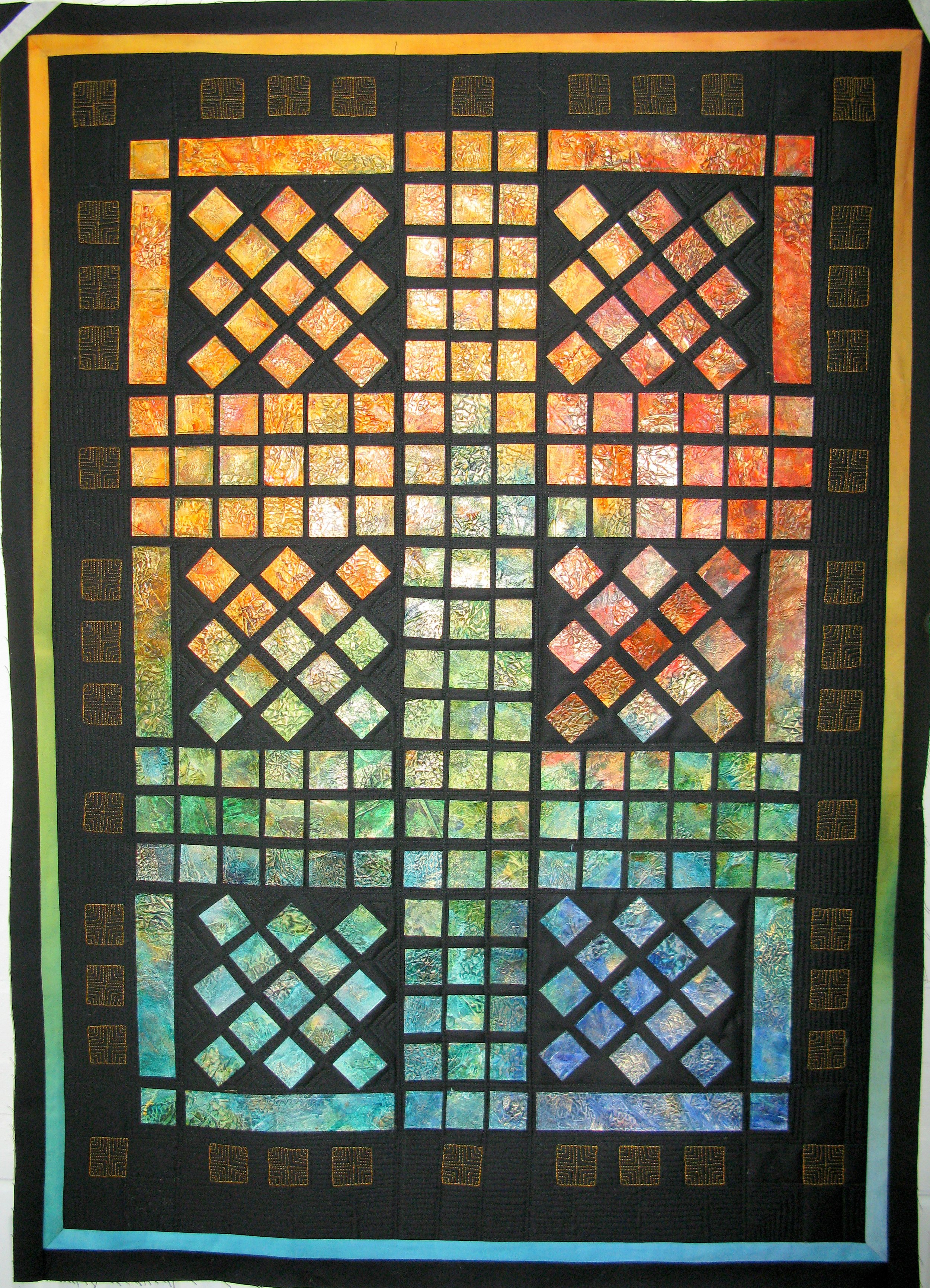 A strange mixture of old quilts just as a record really. Most reflect my more decorative stage, and have sold; some have been donated to good causes, or repurposed. Currently being updated.