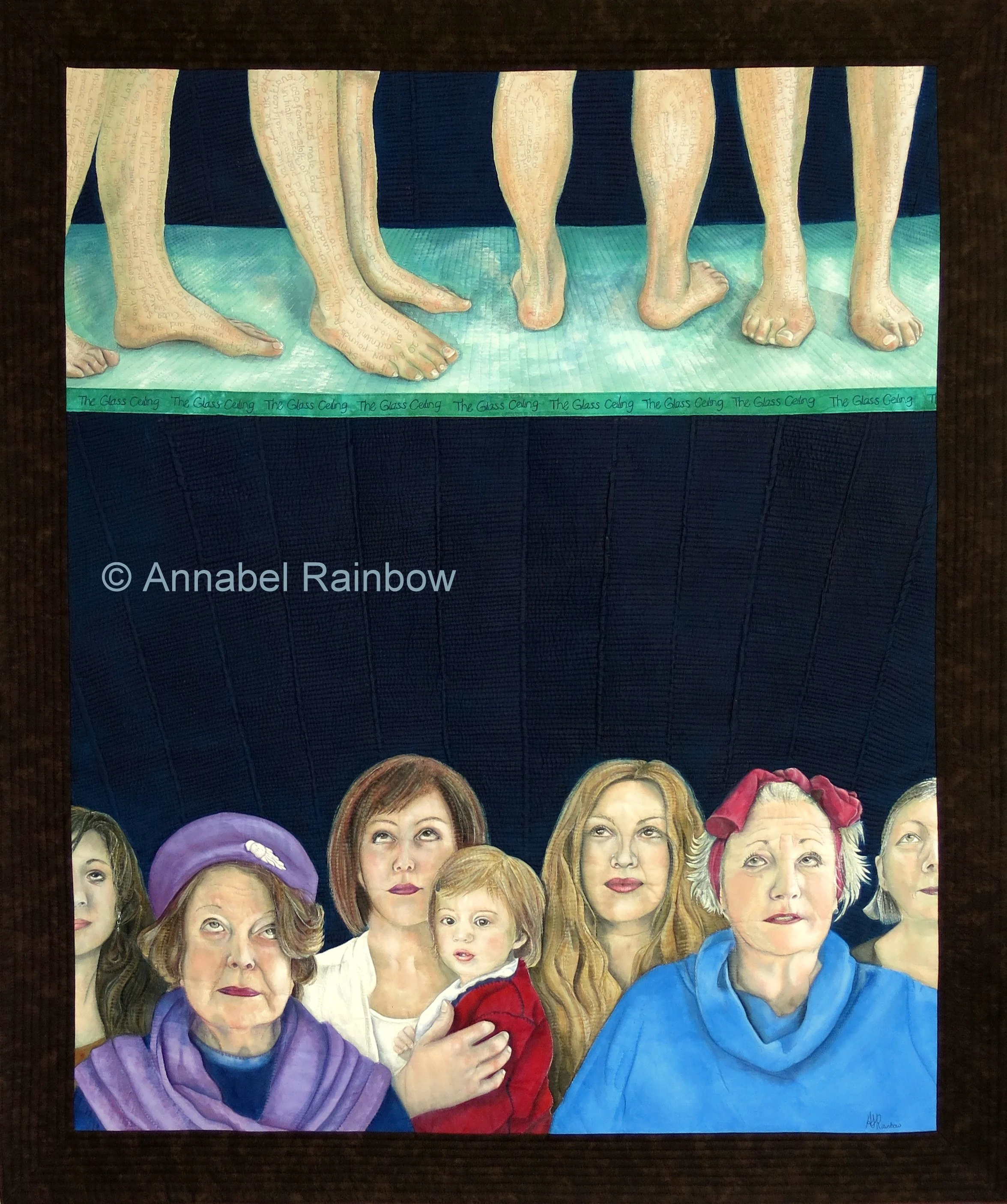 Each quilt includes a life model and a heavily stitched text of the “story” the quilt illustrates, and they cover a wide variety of subjects: feminism, work, motherhood, monopause, abuse, depression, bullying, ageing and injustice. Click the links to read more (being updated) Video are also available for some quilts.